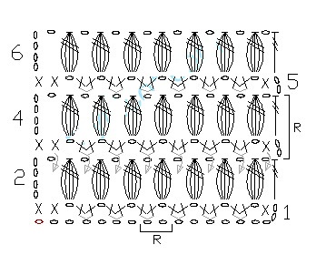 SUBIR 2 CORR E NA 3ª CORR DE BASE FAZER UM PONTO BAIXO,* 1 CORR, PULA 1 CORR DE BASE E NA PROXIMA FAZ 2 PONTOS BAIXOS NO MESMO LUGAR,* REPETIR DE * A * ATÉ O FIM